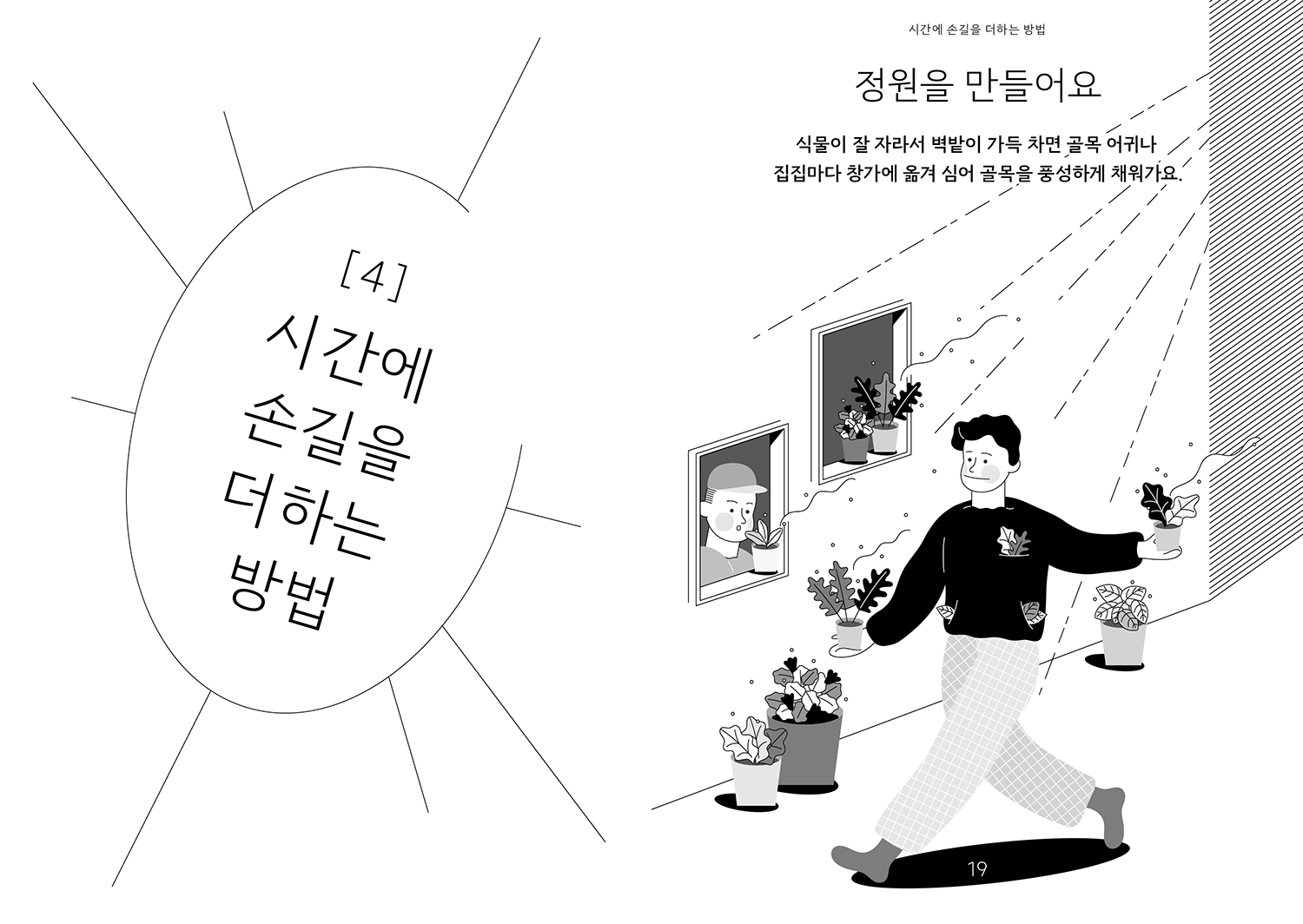 지난 해, 서울시도시재생센터의 ‘서울로7017’ 도시재생 사업 중 <중림동 우리동네 가꾸기>사업으로 ‘햇살골목(벽화)+초록터(벽밭)’를 조성했고, 이 골목을 공유하는 주민들이 벽밭을 알고, 채우고 관리할 수 있도록 안내하는 가이드북을 제작하였습니다. ‘햇살골목+초록터’를 만들며 우리가 상상했던 모습을 그림으로 담아보았습니다. 이 그림보다 더 다채롭게 채워질 초록터와 골목을 기대해봅니다.